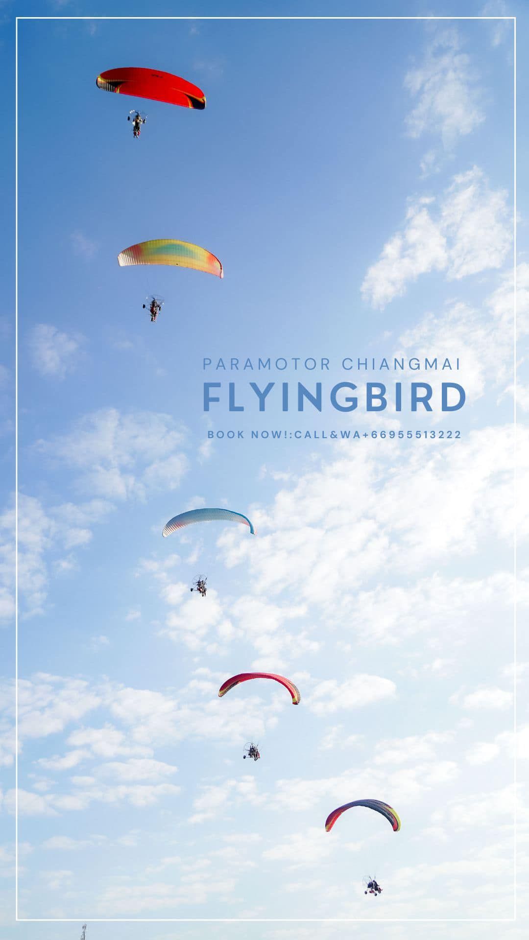 สัมผัสจากมุมมองที่แตกต่าง ด้วยประสบการณ์การบินพารามอเตอร์ที่จะพาคุณลอยละล่องเหนือเมืองเชียงใหม่อย่างอิสระ เสมือนนกที่โบยบินในท้องฟ้ากว้าง