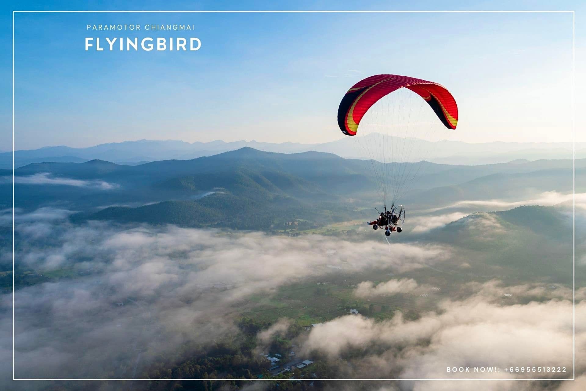 สัมผัสประสบการณ์บินพารามอเตอร์เหนือเชียงใหม่ ชมวิวพระอาทิตย์ขึ้นเหนือเมืองเชียงใหม่ ทะเลหมอก และตัวเมืองเชียงใหม่จากมุมสูง พร้อมทีมนักบินมืออาชีพและความปลอดภัยมาตรฐานสากล เริ่มต้นเพียง 2,900 บาท